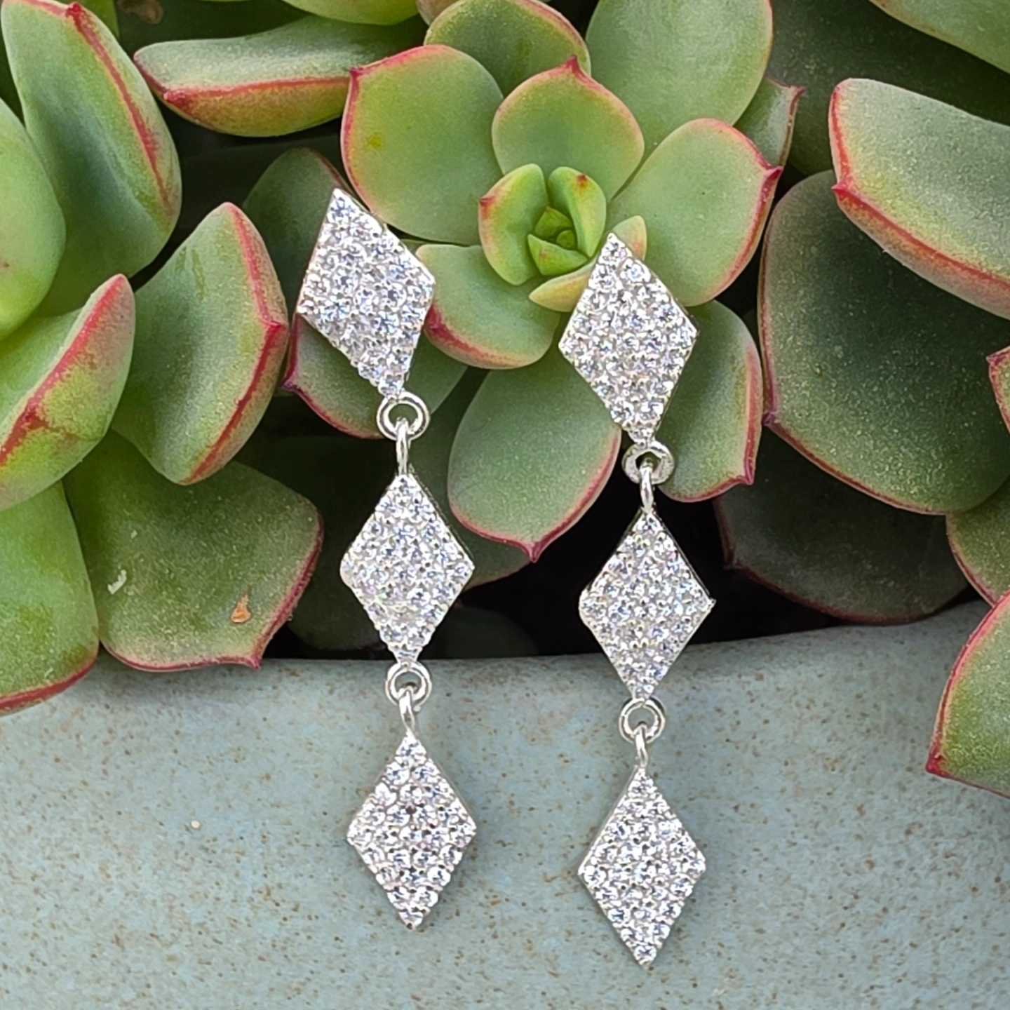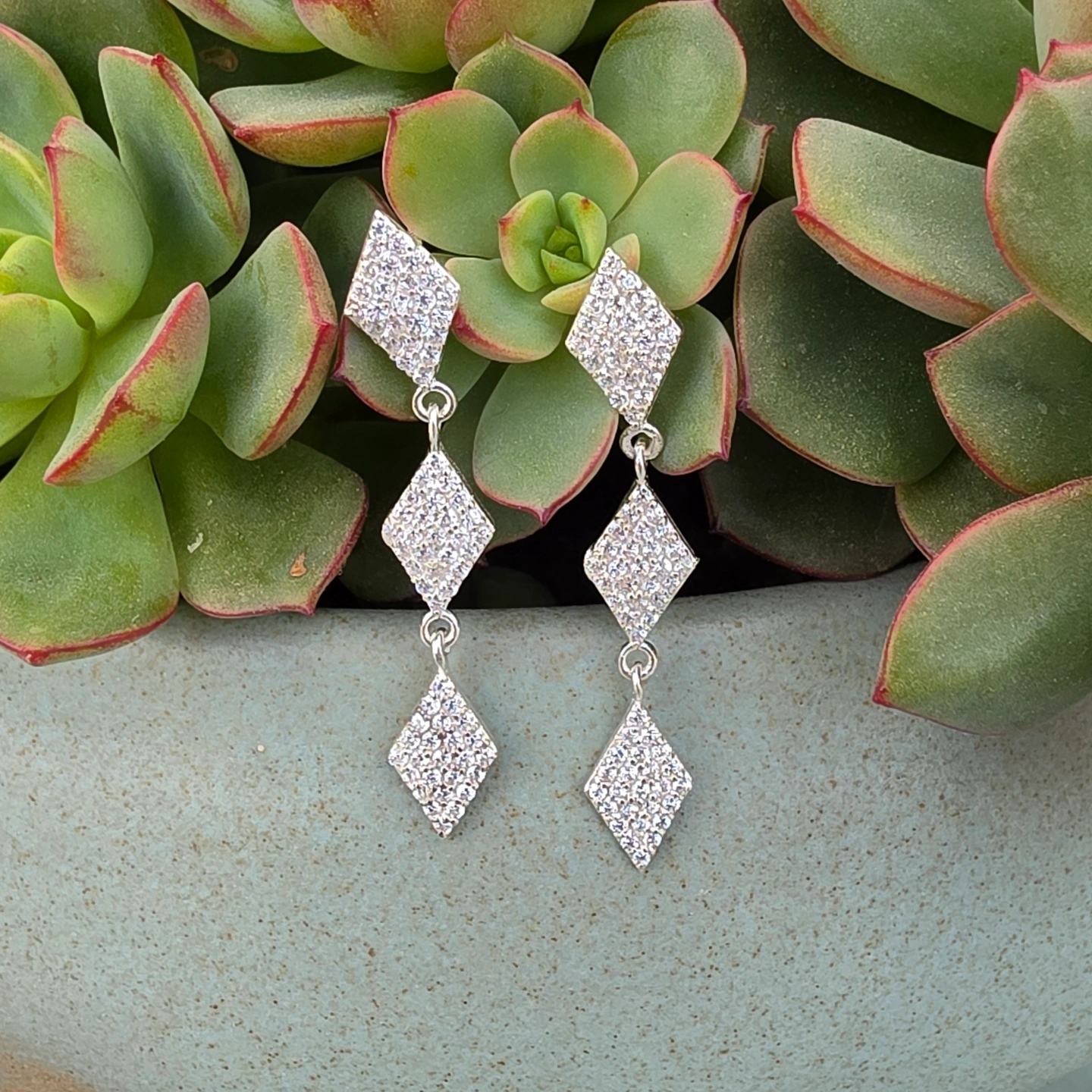 Diamod Drop Silver Earrings