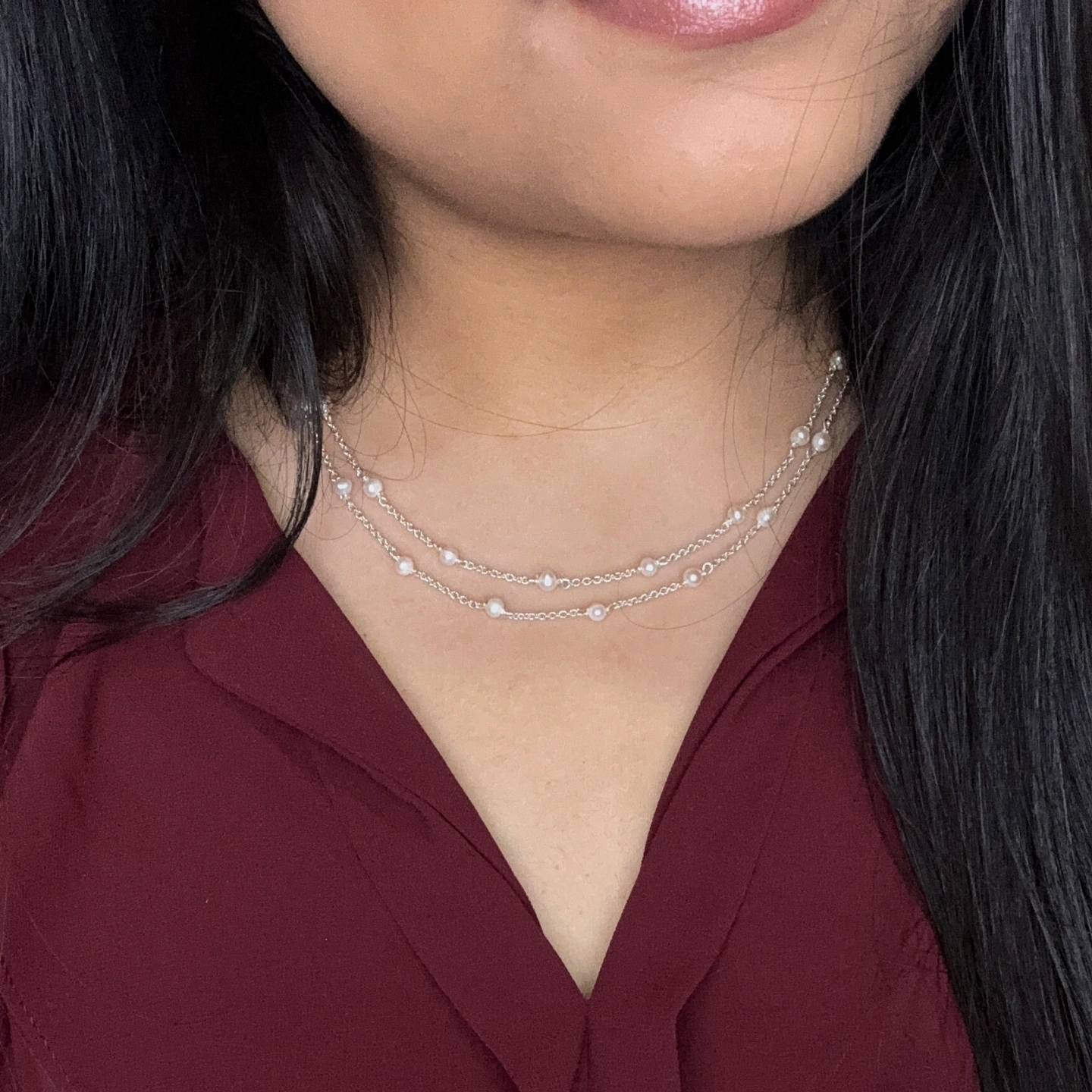 Double Layer Silver Pearl Necklace